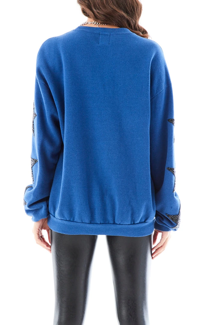 The Furst of a Kind all star. This vintage one of a kind Indianapolis Colts sweatshirt was handpicked by Furst of a Kind as the perfect foundation to totally rework and bling out with black star patches on the sleeves. How could you not be starstruck? You know you want it.