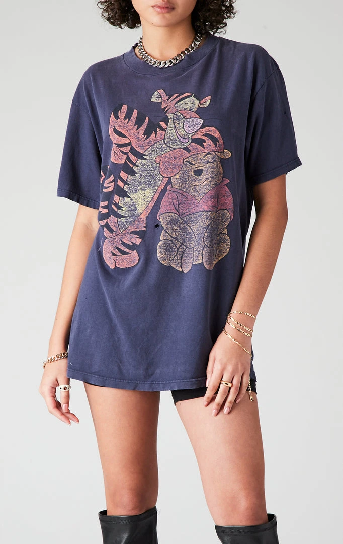 Seriously, what’s better than cartoons & vintage? Furst of a Kind hand sourced this vintage Winnie the Pooh tee and turned your nostalgic childhood memories into a vintage top you can wear every day. Want some added luxury? This piece has been stonewashed to ensure a natural distressing and vintage fabric feel. We love this for you- time to start collecting.Â