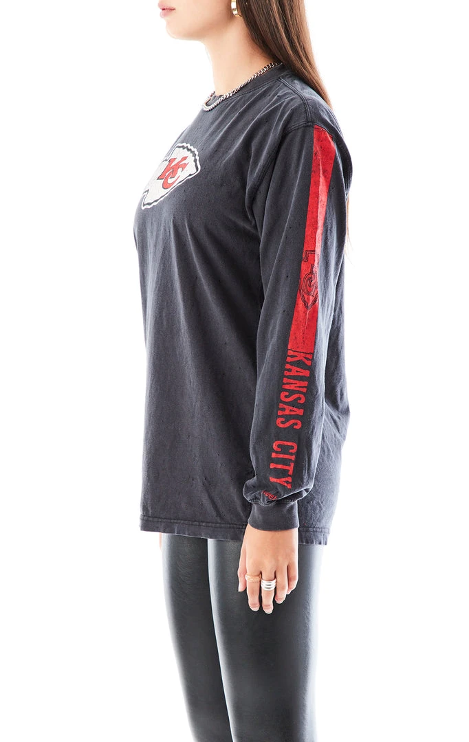 Furst of a Kind has found the perfect vintage long sleeve NFL tee just for you. This vintage Kansas City Chiefs long sleeve tee has been stonewashed for an ultra worn-in look and hand feel.