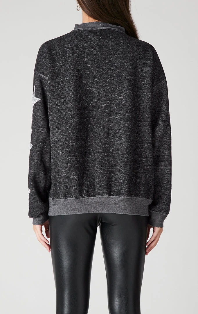 Put your thing down flip it and rework it. Furst of a kind made their mark on this vintageĀ Kansas City Chiefs sweatshirt with a fresh black overdye process. How could we be even more obsessed? Add silverĀ rhinestone star patches to the sleeves, that’s how.