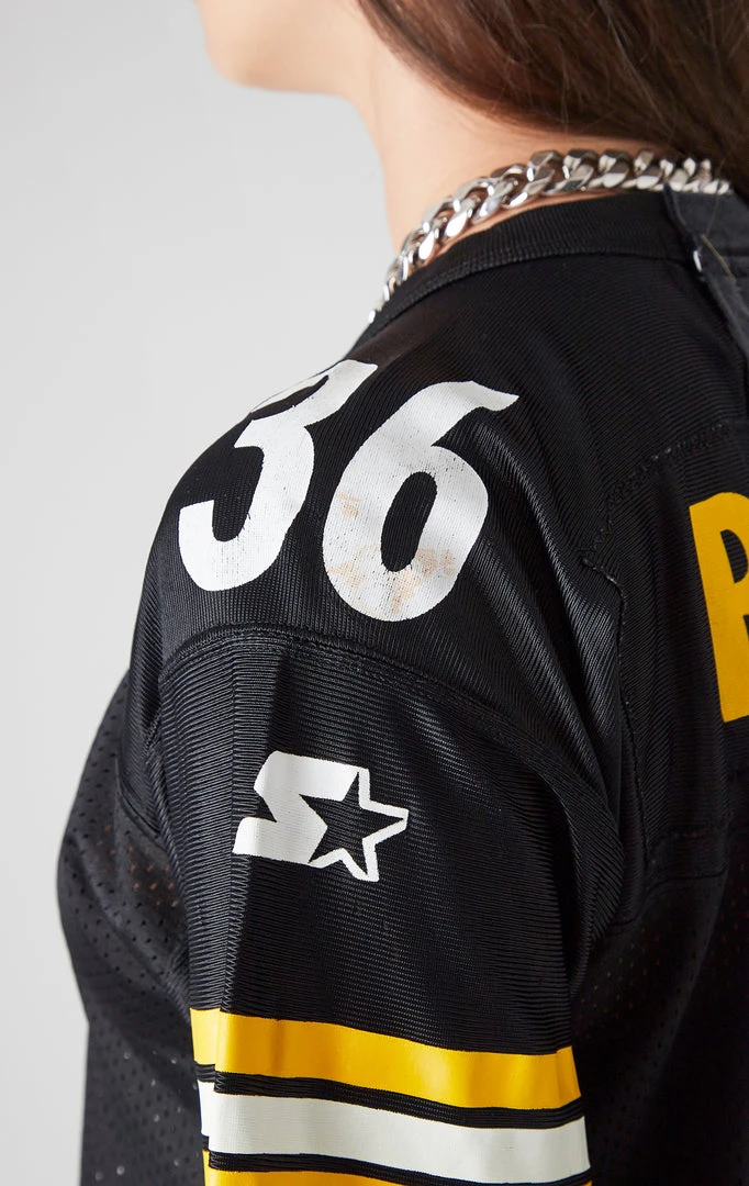The gemini of vintage tees, this baby is two sided and we love her for it. Furst of a kind spliced together a vintage Pittsburgh Steelers tee on one side, with a pre-loved jersey on the right. Now throw in the perfect cropped cut and the most sustainable way to rep your team? One + One = you need it now.
