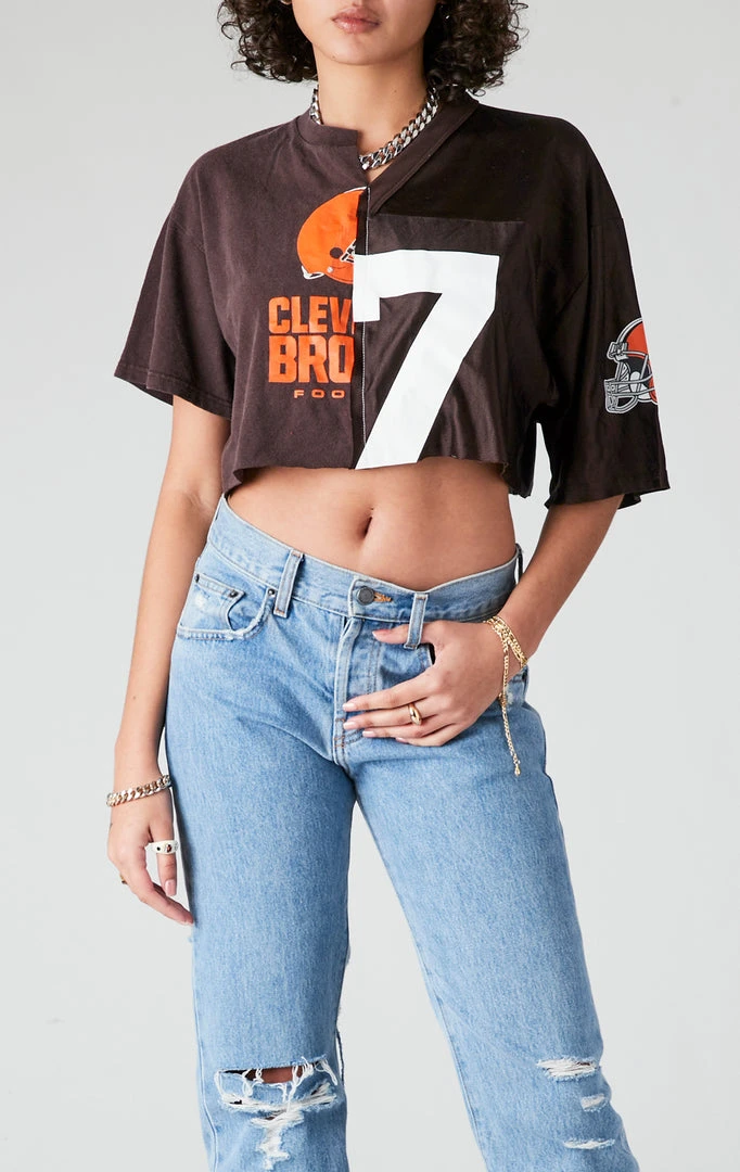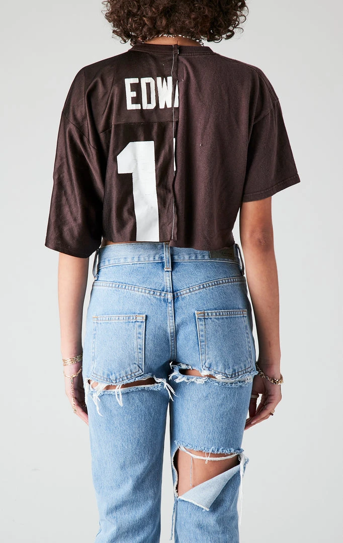 The gemini of vintage tees, this baby is two sided and we love her for it. Furst of a kind spliced together a vintage Cleveland Browns tee on one side, with a pre-loved jersey on the right. Now throw in the perfect cropped cut and the most sustainable way to rep your team? One + One = you need it now.