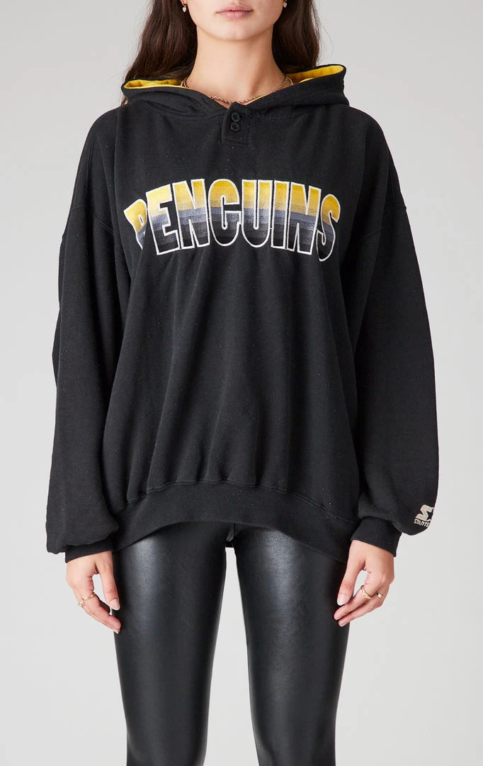 The perfect vintage Pittsburgh Penguins hooded sweatshirt. Period. Let’s be honest, a classic vintage sports hoodie never goes out of style. This one was sourced by the Furst of a Kind team & reworked just a touch with a stonewash process to add to the effortless naturally distressed look and feel.