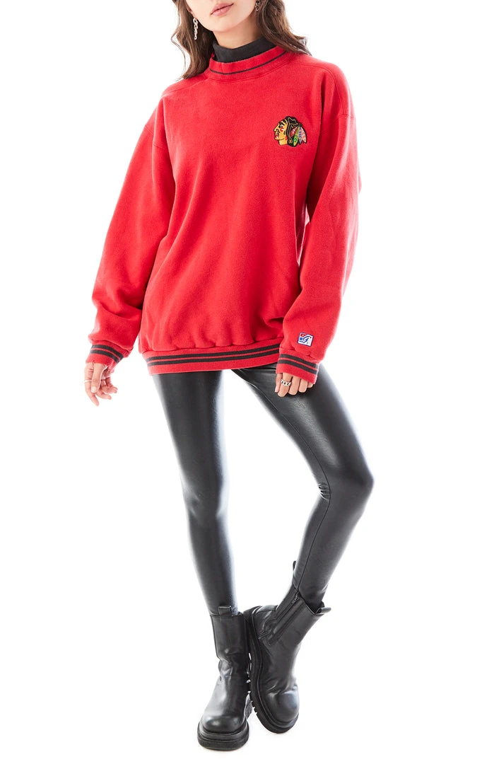 Are you a fan of the Chicago Blackhawks or do you just have good style? Either way, you NEED this vintage turtleneck sweatshirt. Furst of a Kind sourced this piece and is bringing it to you in its original form- it’s just that good. Featuring a cozy turtleneck, oversized shape and killer graphic.