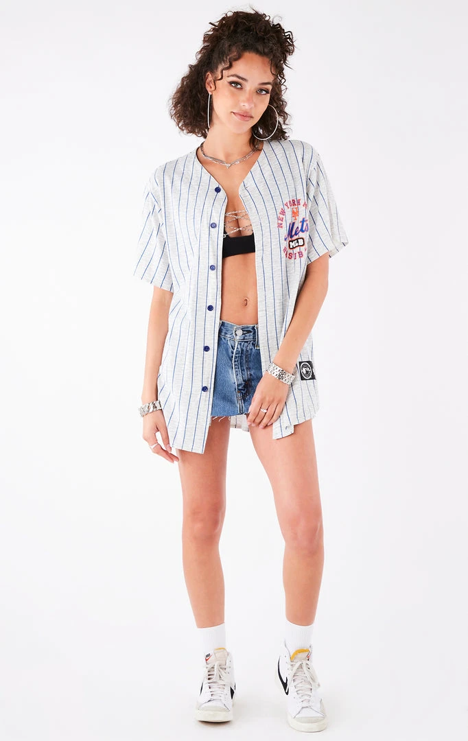 Style this vintage New York Mets baseball jersey open or closed. Hand sourced for the perfect fit & fabric, then hard washed in Los Angeles by Furst of a Kind.