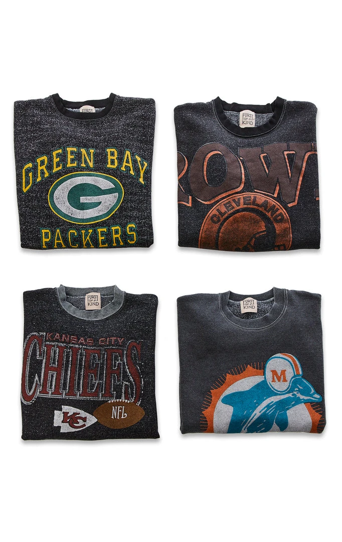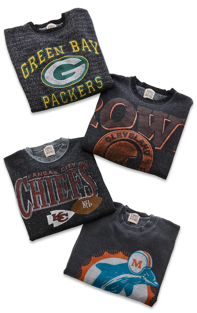 Put your thing down flip it and rework it. Furst of a kind made their mark on this vintage sweatshirt with a fresh black overdye process. Lucky for you, you’re left with a totally unique, repurposed vintage piece that is as sustainable as it is fly. *See sweatshirt details below
