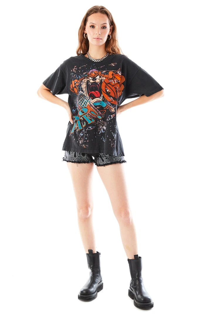 Seriously, what’s better than cartoons & vintage? Furst of a Kind hand sourced this vintage Tazmanian Devil tee and turned your nostalgic childhood memories into a vintage top you can wear every day. Want some added luxury? This piece has been stonewashed to ensure a natural distressing and vintage fabric feel. We love this for you- time to start collecting.Â