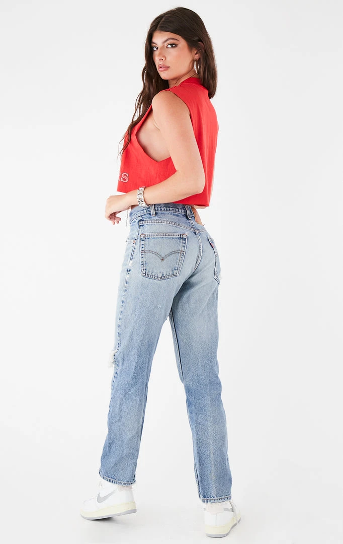 This vintage Texas Tech chain lace up tee is a truly iconic Furst of a Kind fit. Features a sleeveless cut, the perfect crop length and lace up detailing with silver chain. You can lace it tight or let it loose.