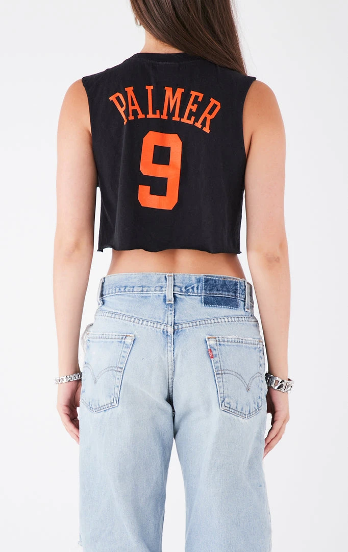 This vintage Cincinnati BengalsĀ chain lace up tee is a truly iconic Furst of a KindĀ fit.Ā Features a sleeveless cut, the perfect crop length and lace up detailing with silver chain. You can lace it tight or let it loose.
