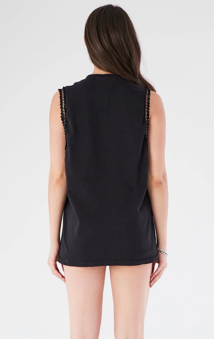 This vintage Carolina Panthers tee was sourced and reworked by Furst of a Kind in Los Angeles with a dramatic sleeveless cut and lined with chain trim.Â