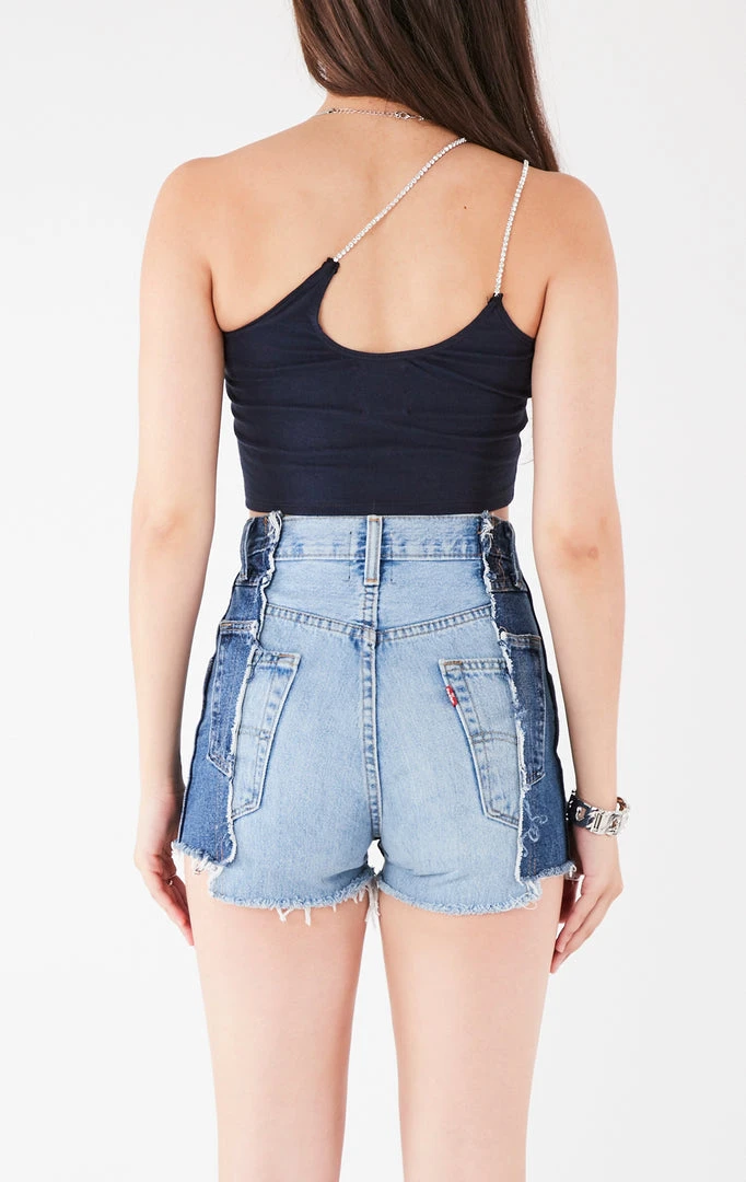 Furst of a Kind took this vintageĀ Northeastern University tee and reworked it into a priceless gem. This tank is complete with a one-shoulder cut out, cropped hem and double rhinestone chain straps.Ā