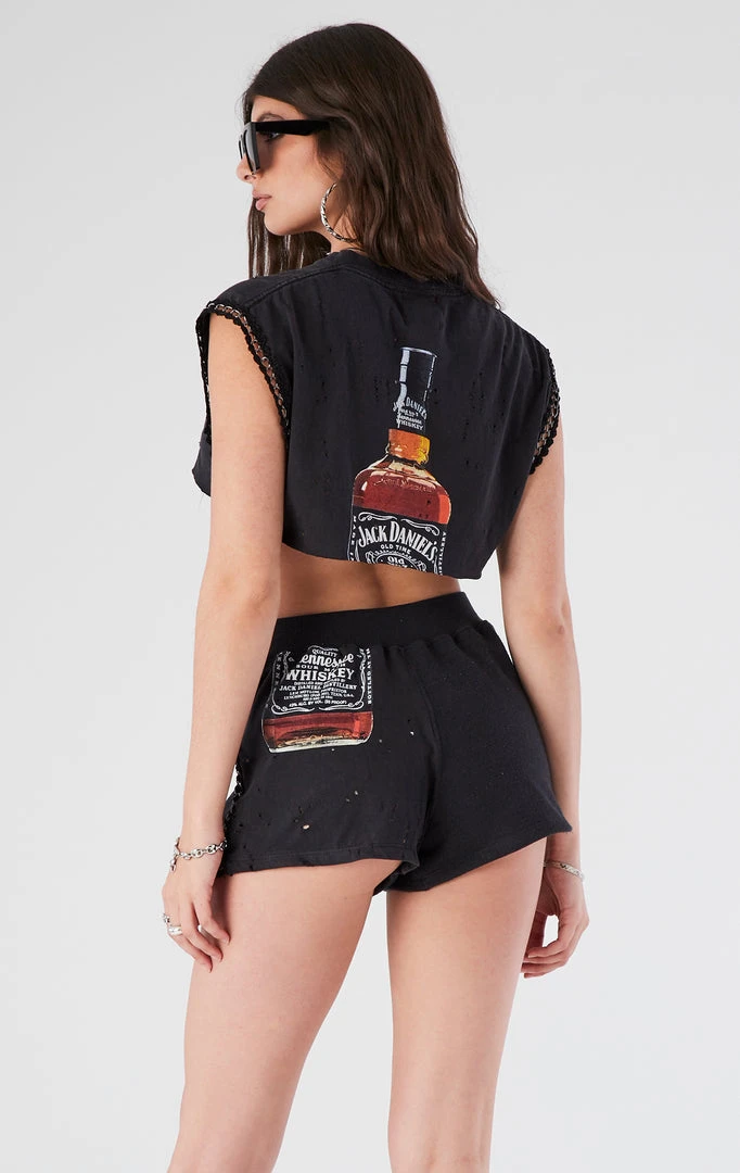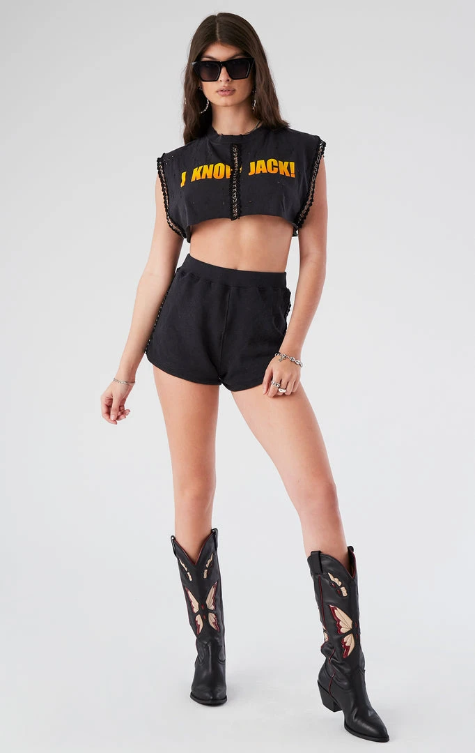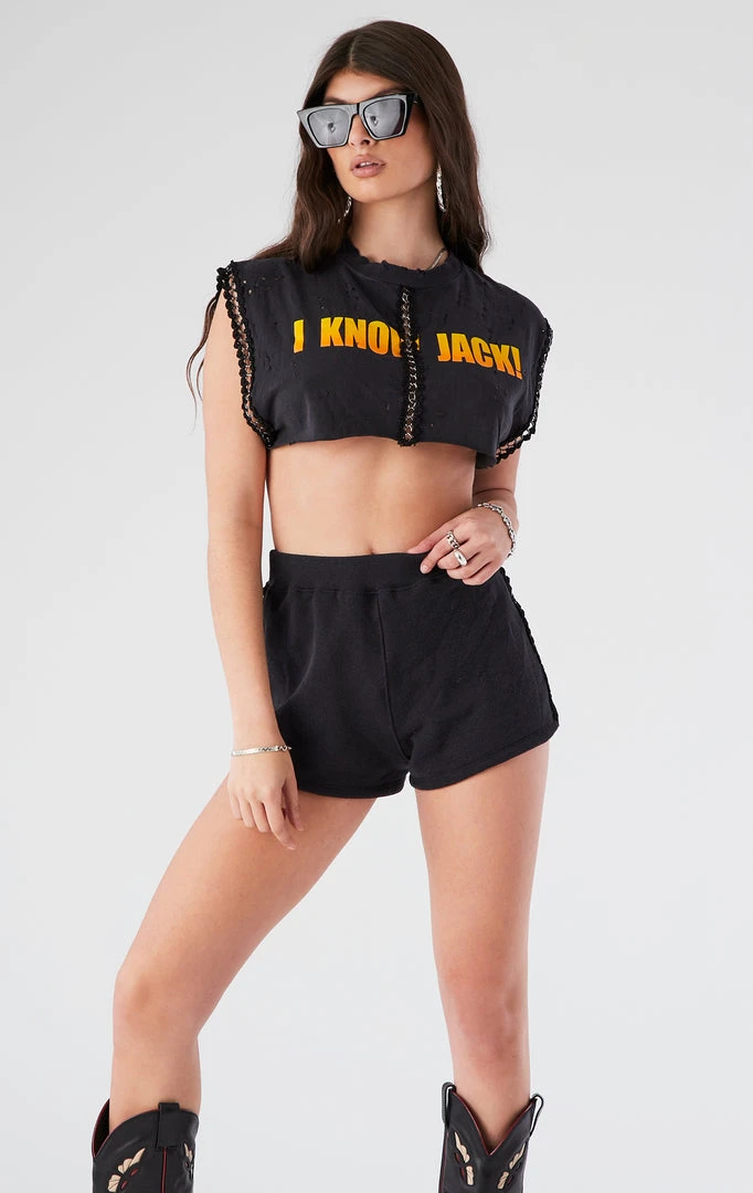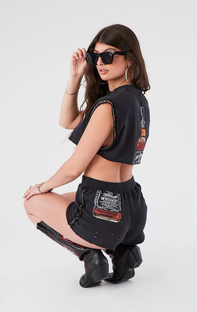 Vintage reworked spliced chain trim set. Upcycled from a vintage Jack Daniel’s tee and solid sweatshirt.