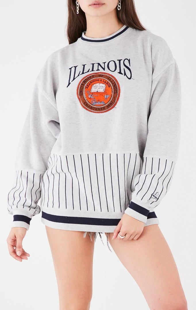 A classic vintage college sweatshirt. This University of Illinois sweatshirt was sourced in Los Angeles by Furst of a Kind. We’ve kept it just the way it was found to preserve its true vintage qualities.Â