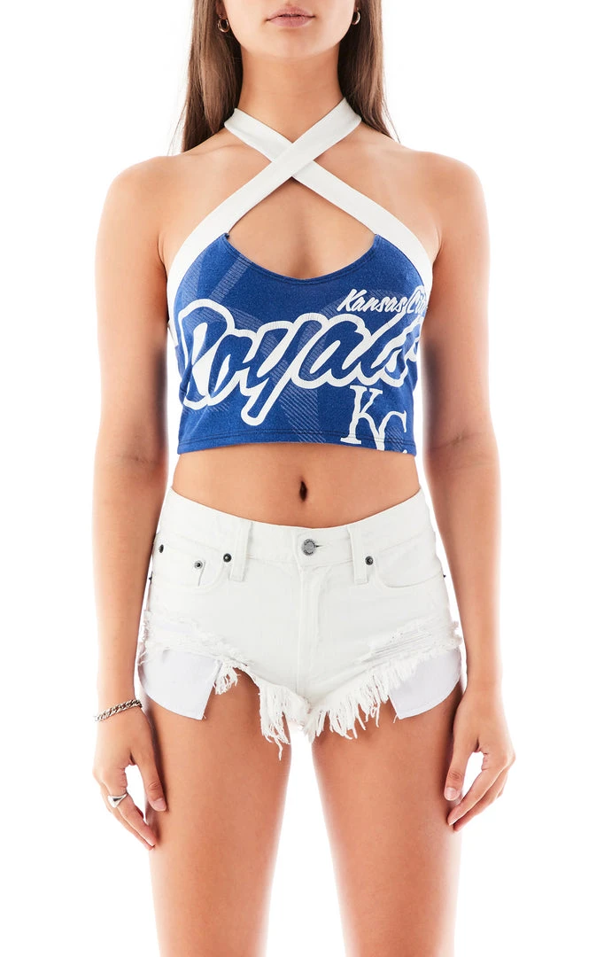 We love this for you. Furst of a Kind took a vintage Kansas City Royals tee and reworked it into the sickest tailgate top ever, hands down. We love the contrast criss cross neckline that creates the perfect little peekaboo moment at the bust. It’s remade vintage like you’ve never seen before.