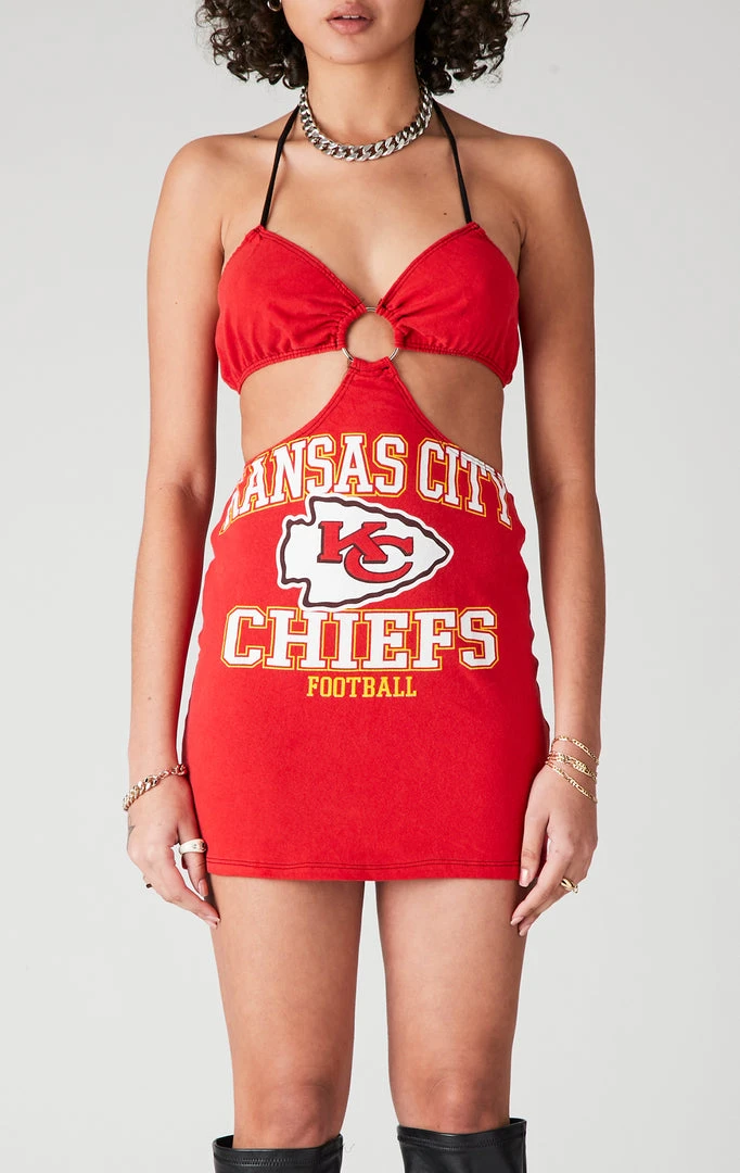 Furst of a Kind took an oversized vintage Kansas City Chiefs tee and reinvented its whole purpose, reworking it into the ultimate head-turning fit with fresh double side cut outs and a halter neck. There’s no comparing this dress, your other vintage could NEVER.
