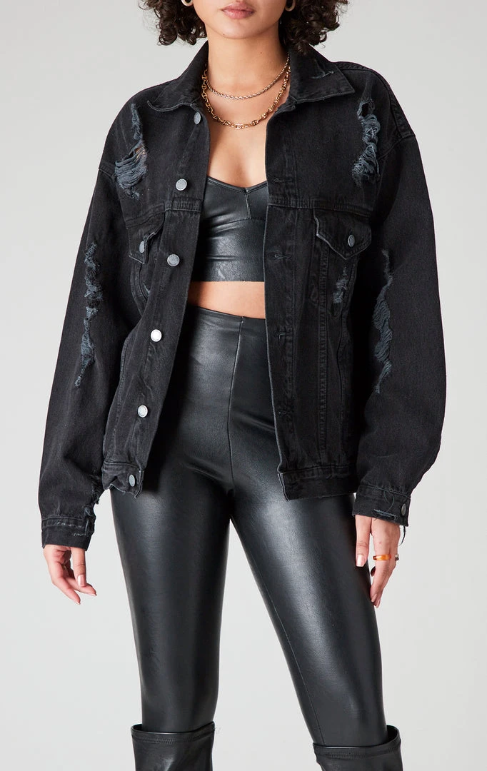 FURST OF A KIND VINTAGE JERSEY PATCHWORK STUDDED CROPPED DENIM JACKET VINTAGE DENIM JACKETS
