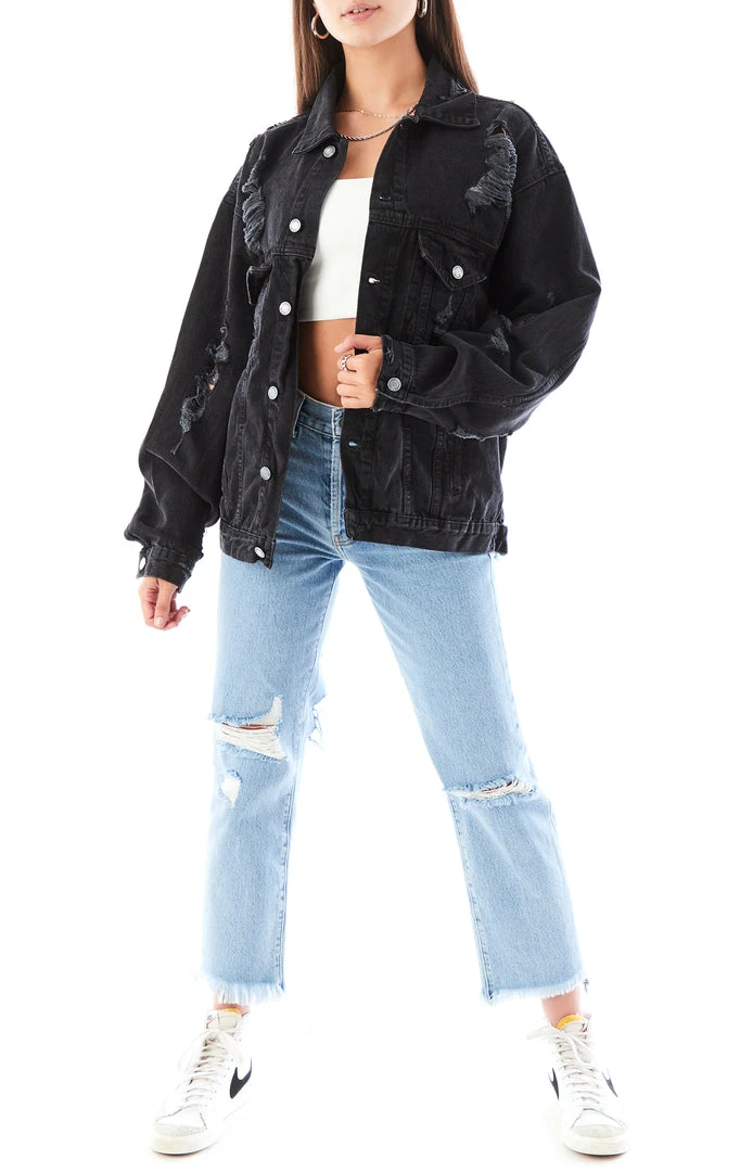 It’s all about the back detail on this one of a kind repurposed black denim jacket. Furst of a Kind added a vintage University of Alabama graphic on the back and we are officially obsessed.Â