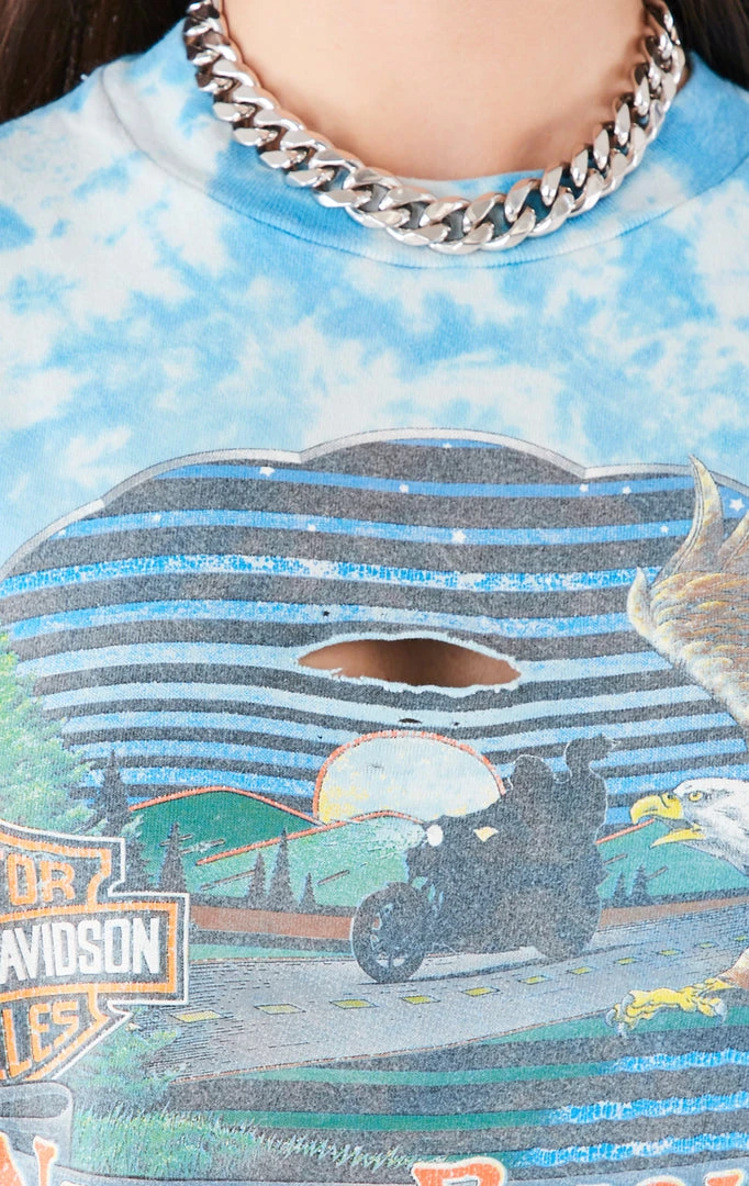 A classic vintage Harley Davidson t-shirt. This one-of-a-kind vintage Harley tee was sourced in Los Angeles by Furst of a Kind. This piece has been stonewashed giving it even more attitude and natural distressing.