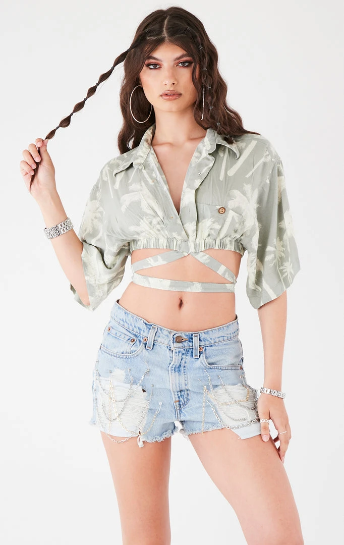This one-of-a-kind vintage Hawaiian shirt was reworked by Furst of a Kind into a wrap top. Style it and wrap it just how you like.