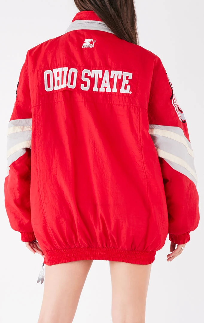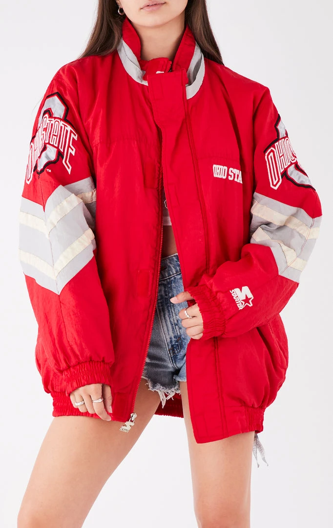 This one-of-a-kind vintage Ohio State University heavy zip up windbreaker jacket is the layering piece you need to keep you looking cool and feeling cozy. Sourced by Furst of a kind in Los Angeles.Â
