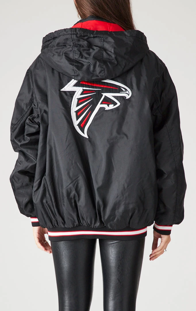 It’s about to be brick outside, don’t let your look suffer. This one of a kind vintage Atlanta Falcons heavy zip up windbreaker jacket is the layering piece you need to keep you looking cool and feeling cozy. Furst of a kind knows where it’s at. You’re always on the hunt for the perfect vintage jacket, right? You see it, you like it, you want it, you got it.Â