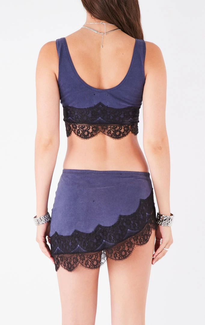 This vintage Houston Astros tee was upcycled by Furst of a Kind and reworked into a one-of-a-kind two piece set. This tank top and skirt set features lace trim.