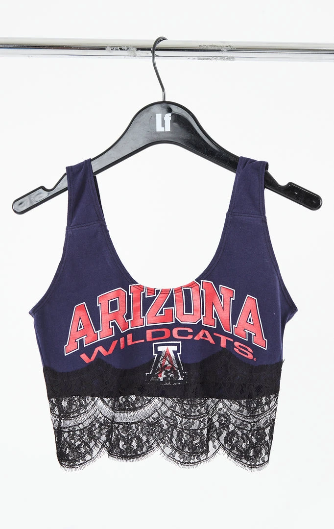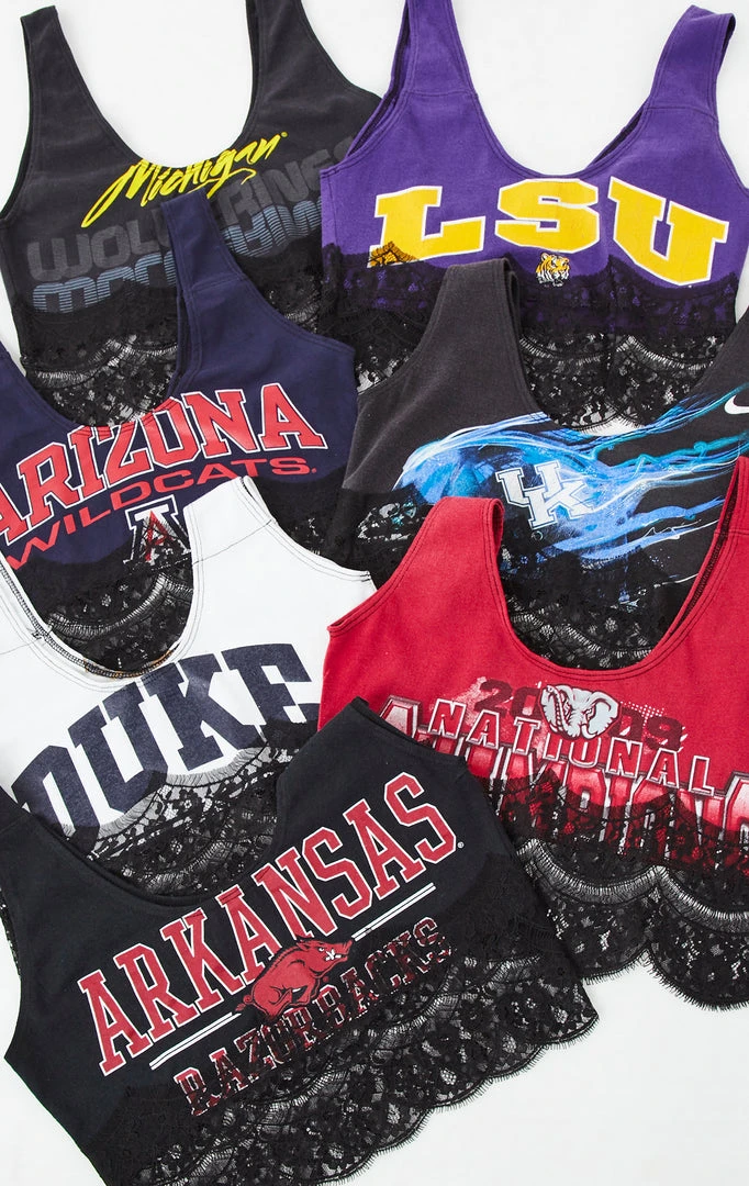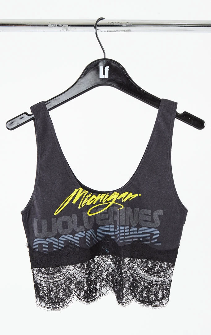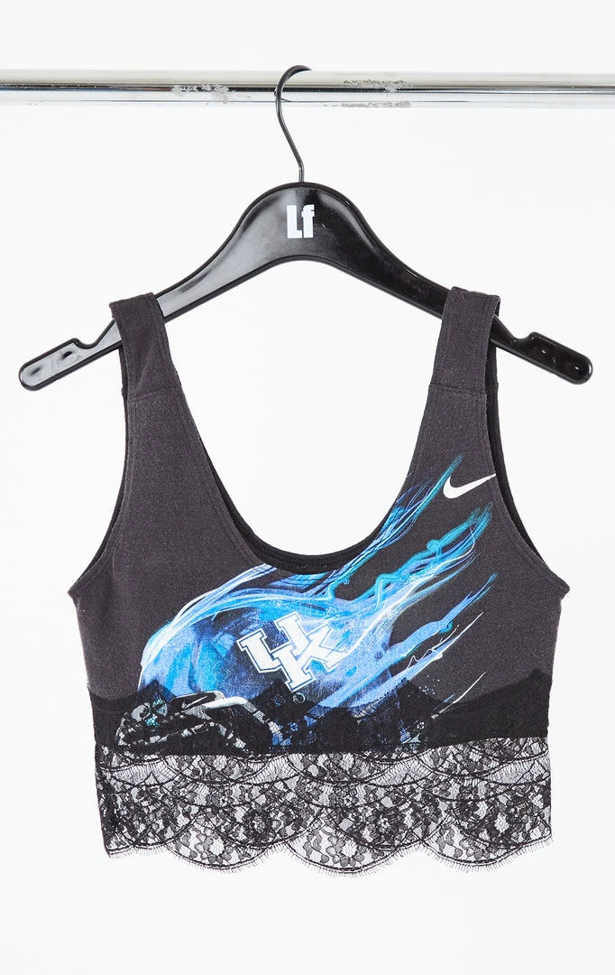 These vintage tees were reworked into a tank top by Furst of a Kind. Features a crop shape and lace trim.Â