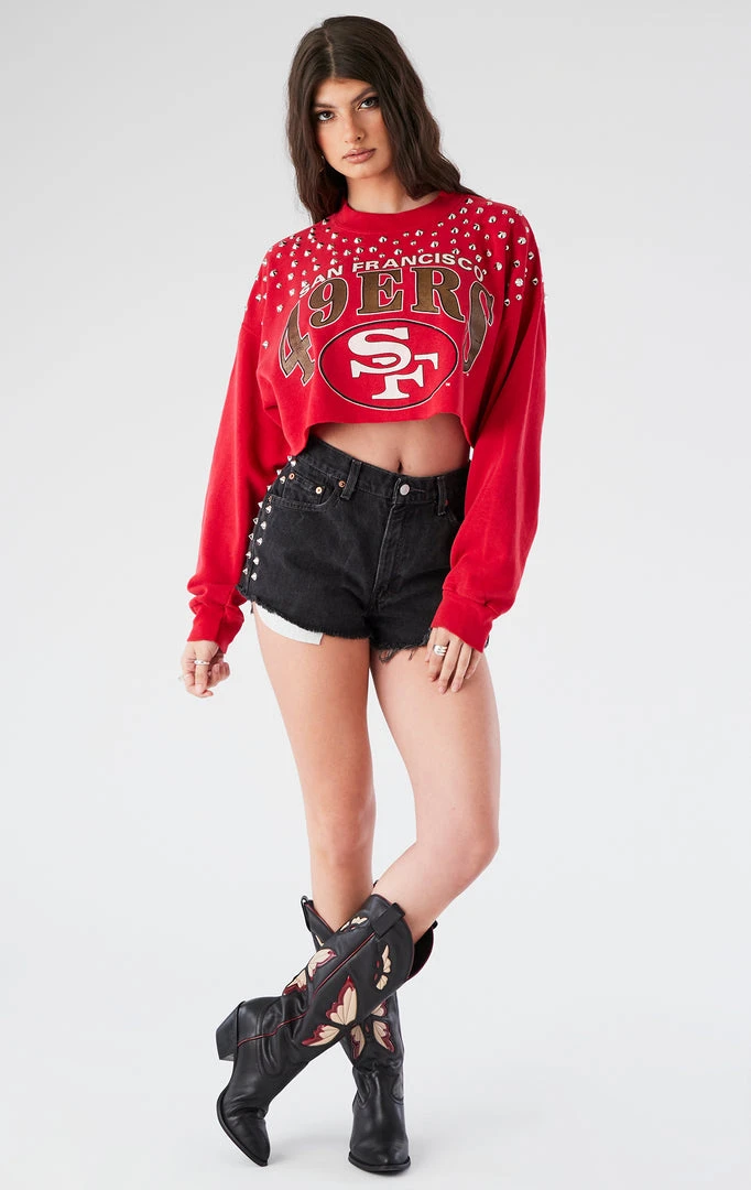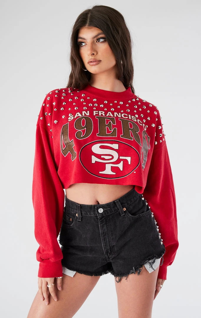 This reworked vintage San Francisco 49ers sweatshirt was updated by hand by Furst of a Kind with the perfect cropped cut and multi stud detailing.Â