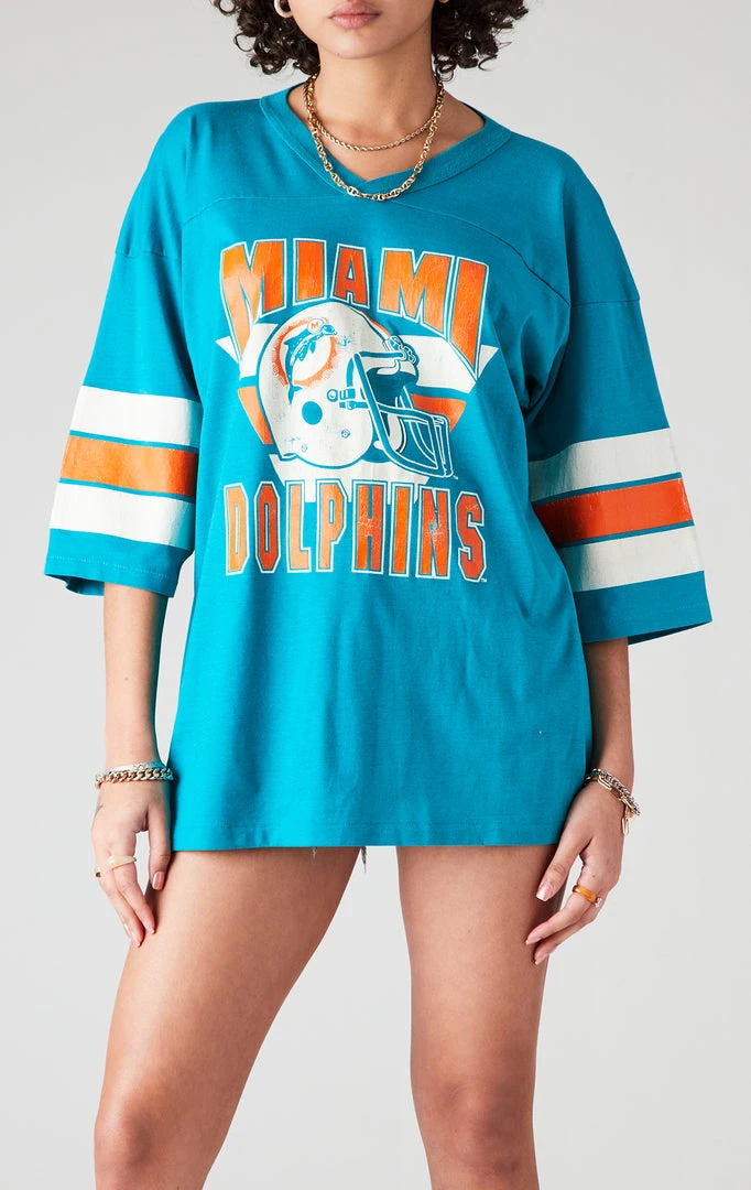 Totally iconic. The rare specialty vintage pieces are the top tier of the Furst of a Kind archives. This one-of-a-kind vintage Miami Dolphins tee is in its original condition and polished just for you. This tee is going to make your friends a little jelly, up to you if you want to share.