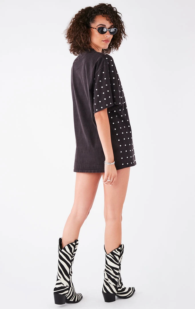 This vintage Oakland Raiders tee was reworked by hand by Furst of a Kind. This t-shirt is covered in silver rhinestone detailing on the bodice and sleeves.