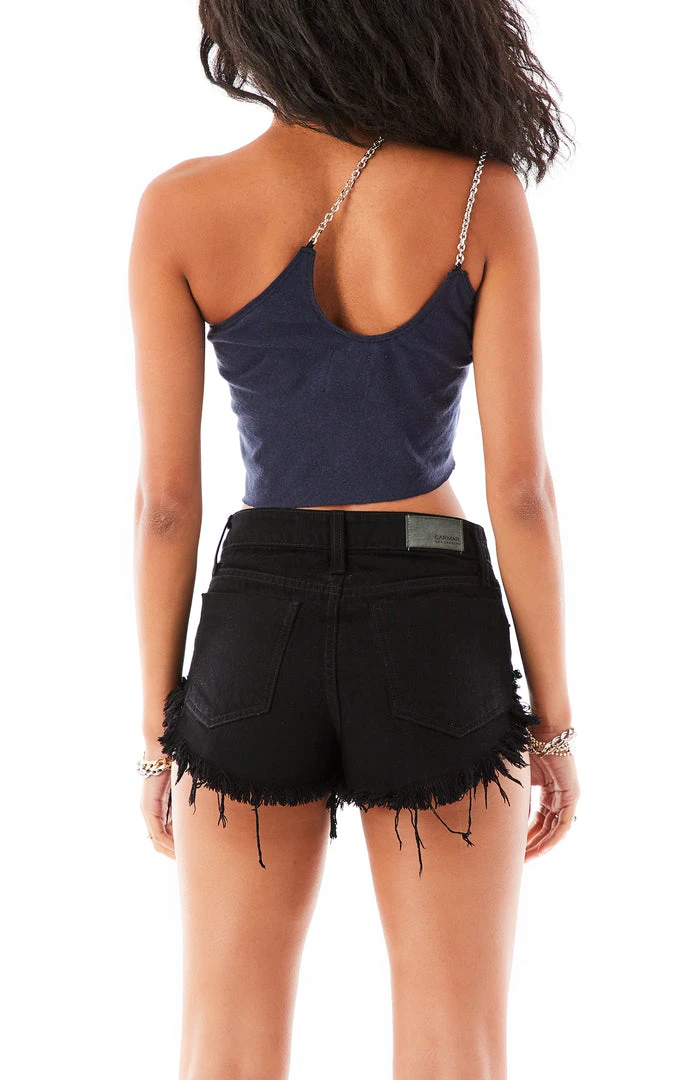 Furst of a Kind took this vintage Chicago Bears tee and reworked it into a one shoulder tank top. This tank is complete with a one-shoulder cut out, cropped hem and double chain straps.