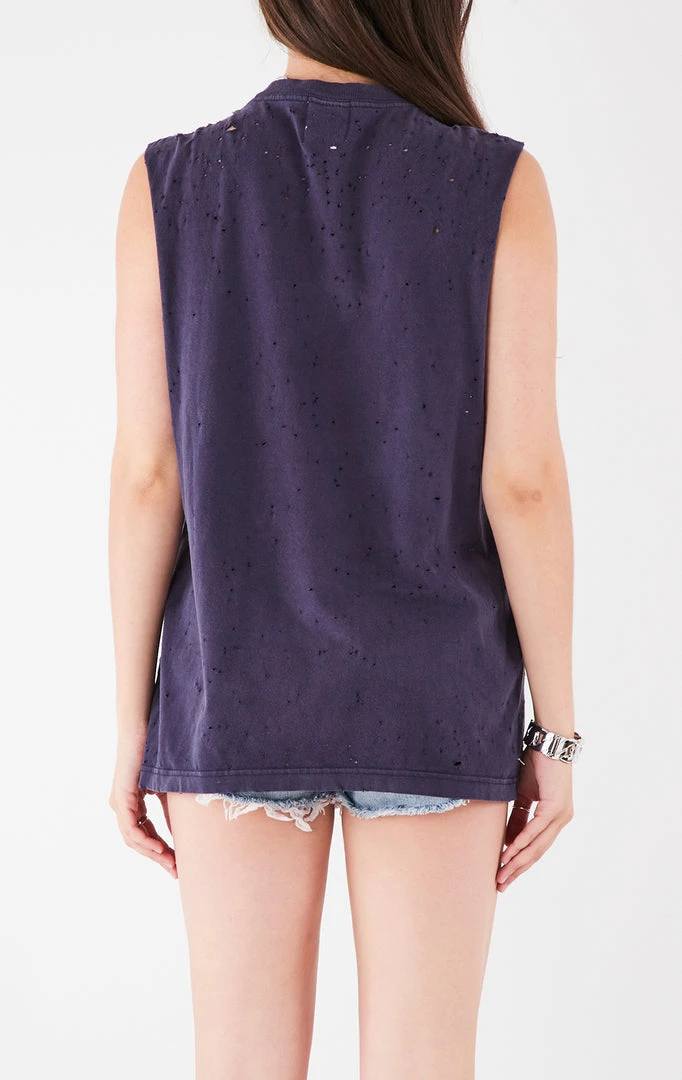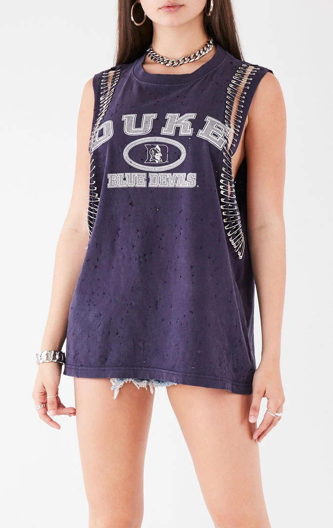 This vintage Duke University tee was sourced and reworked by Furst of a Kind in Los Angeles with a dramatic sleeveless cut and safety pin detailing.