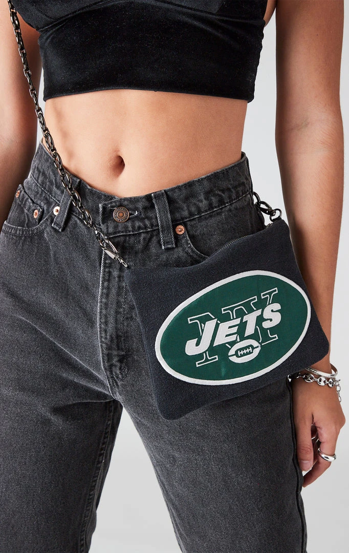 Just throw it in the bag. This one of a kind vintage sweatshirt purse is the cherry on top of your reworked vintage collection. Furst of a Kind upcycled a vintage New York Jets sweatshirt, turning it into the perfect every day handbag to rep your school no matter the occasion. Featuring a gunmetal ring strap, zipper closure and flannel lining with endless styling options. Wear it as a purse or as a waist bag.