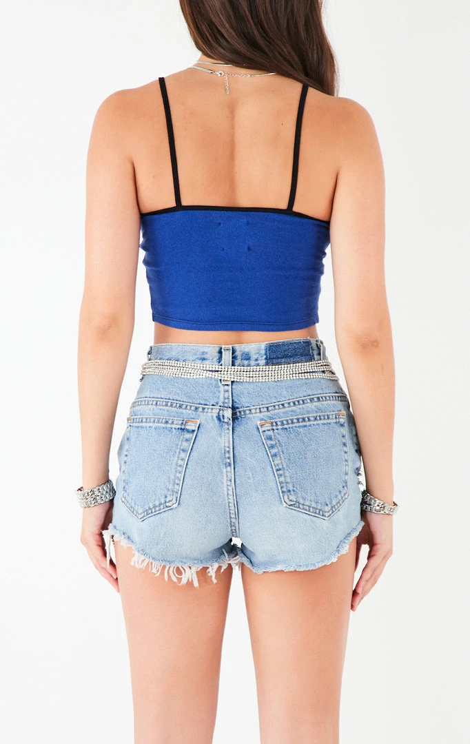 This vintage Los Angeles Dodgers tee was reworked into a tank top by Furst of a Kind. Features a crop shape and rhinestone fringe.Â