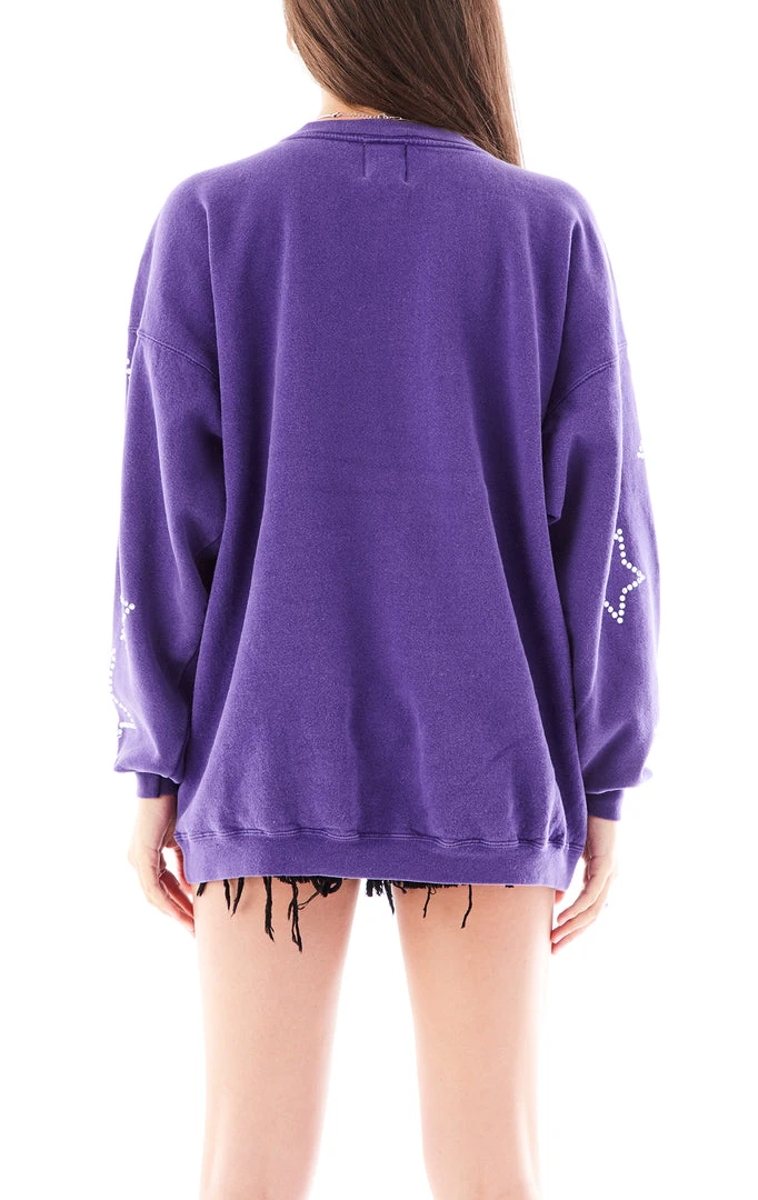 Bling it on: Stars edition. This vintage Kansas State University sweatshirt was made with you in mind. Furst of a Kind sourced and reworked this sweatshirt with silver rhinestone star outline embellishment. Totally one of a kind and totally meant for you. It’s written in the stars.Â