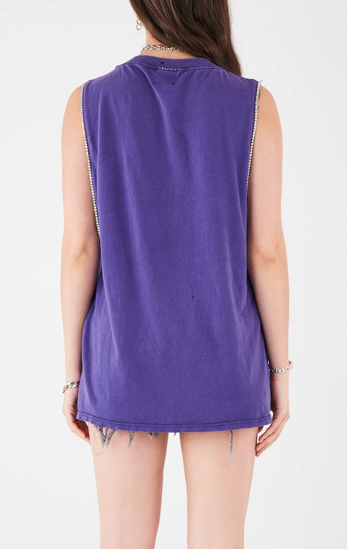 This vintageĀ Minnesota Vikings tee was sourced and reworked by Furst of a Kind. FeaturesĀ a dramatic sleeveless cut and rhinestoneĀ trim.Ā