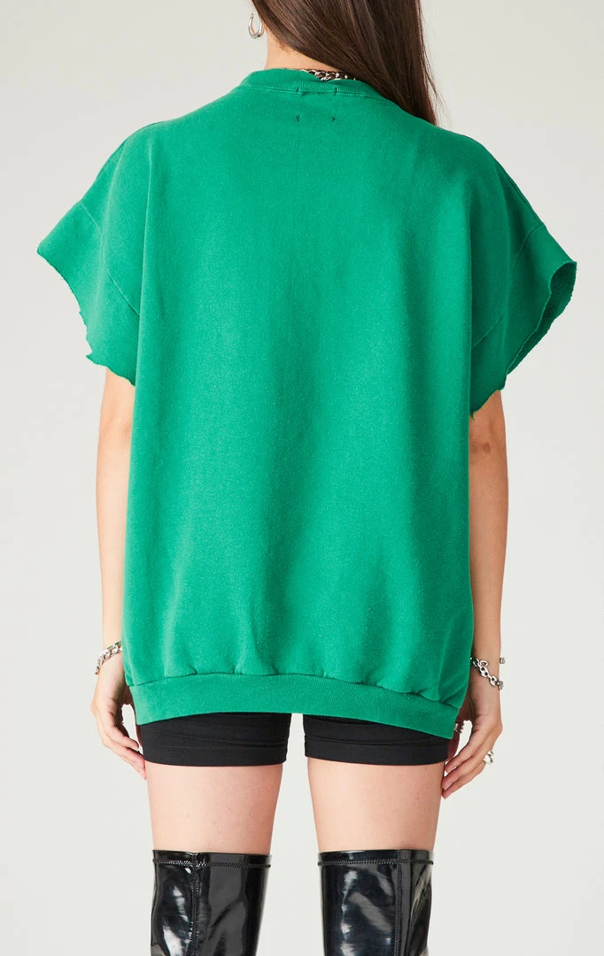 For the days when you wanna be comfy & cute, but also keep it cool. This reworked one of a kind vintage New York Jets sweatshirt is the perfect piece. You can never have enough oversized sweatshirts, but the cut-off short sleeves add a fresh new element to your collection. You’ll get that worn in vintage feel and comfort without all the heat.