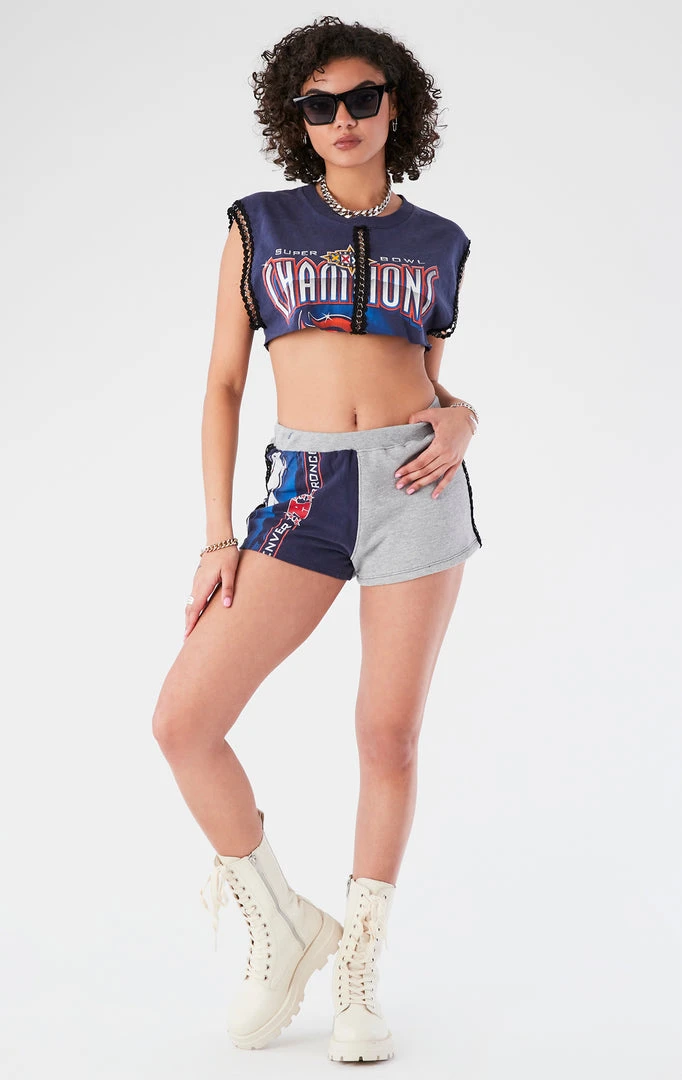 Vintage reworked spliced chain trim set. Upcycled from a vintage Denver Broncos tee and solid sweatshirt.