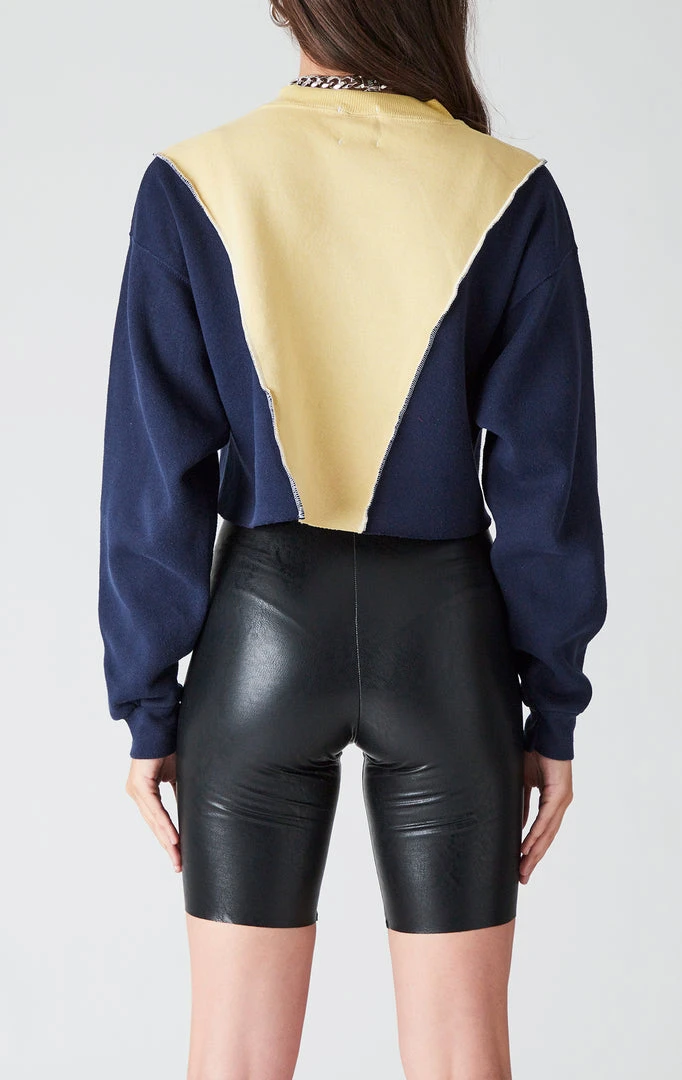 This vintage University of Notre Dame sweatshirt was constructed from handpicked vintage pieces from all over the USA by the Furst of a Kind team. To create this amazing spliced style, two cozy sweatshirts were spliced together in a V pattern with overlock stitching and updated with a cropped cut. The perfect pair.