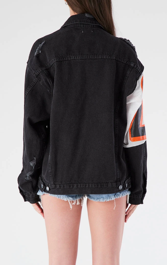 You need this Furst of a Kind reworked denim jacket. Hand sourced, sewn & spliced, thisĀ vintageĀ Cincinnati BengalsĀ patchworkĀ denim jacket is the epitome of cool. Featuring assorted vintage graphic inserts throughout. Style on the street or in the stands, the choice is yours.Ā