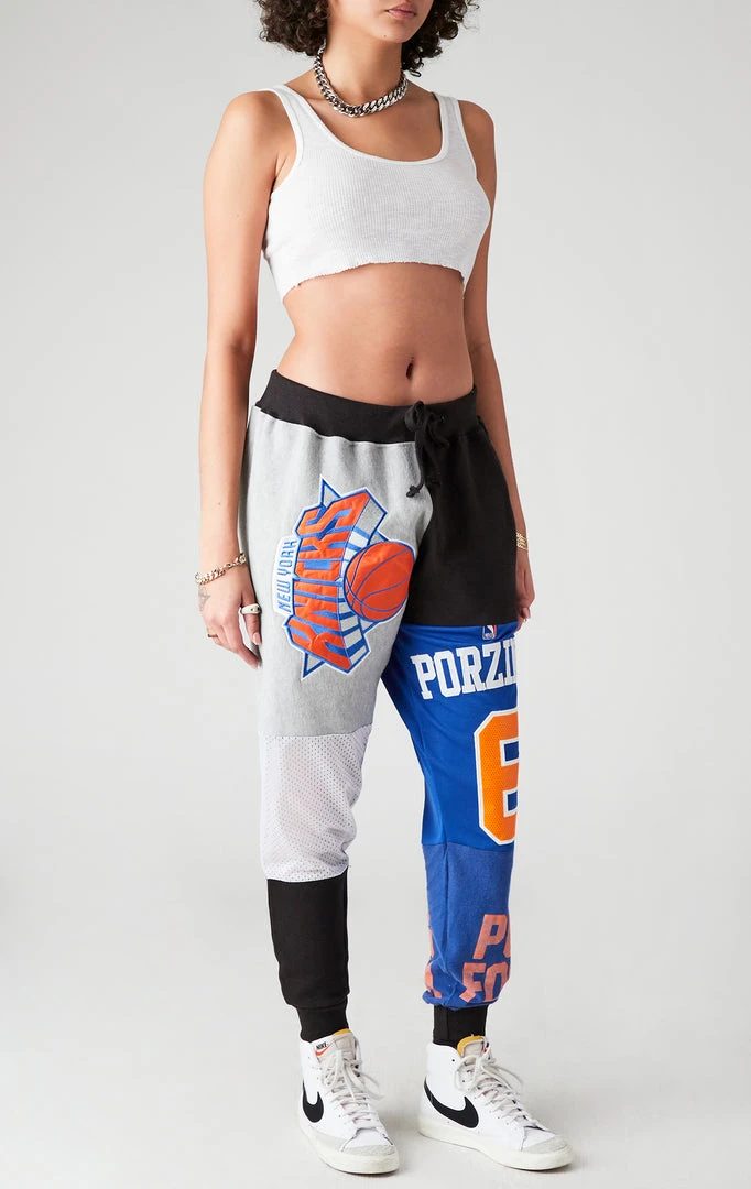 You need these reworked sweatpants from Furst of a Kind. Hand sourced, sewn & spliced, these vintage New York Knicks patchwork sweatpants are the epitome of cool. Featuring assorted vintage graphic inserts in a relaxed fit silhouette with pockets and drawstring closure.