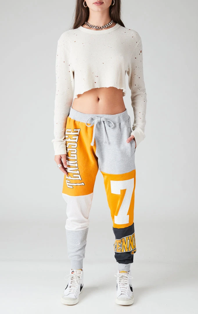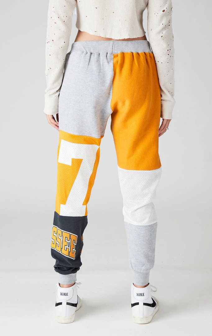 Step aside, Furst of a Kind reworked sweatpants in the house. Hand sourced, sewn & spliced, these vintage University of Tennessee patchwork sweatpants are the epitome of cool. Featuring assorted vintage graphic inserts in a relaxed fit silhouette with pockets and drawstring closure. Style on the street or in the stands, the choice is yours.Â