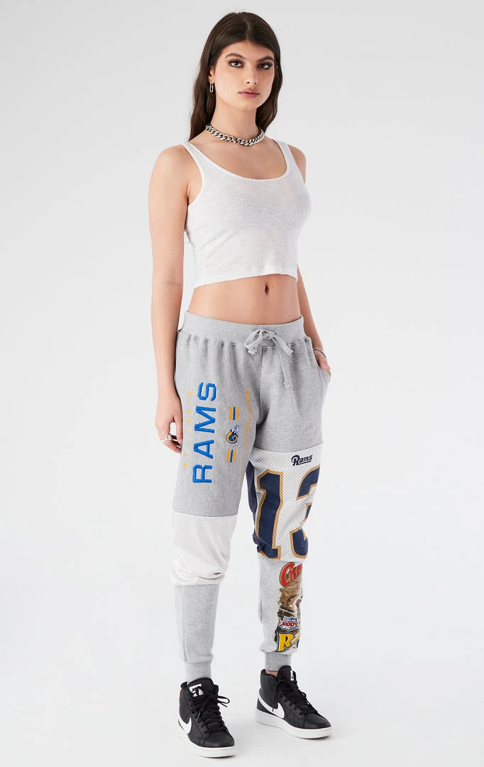 You need these reworked sweatpants from Furst of a Kind. Hand sourced, sewn & spliced, these vintage St. Louis Rams patchwork sweatpants are the epitome of cool. Featuring assorted vintage graphic inserts in a relaxed fit silhouette with pockets and drawstring closure.