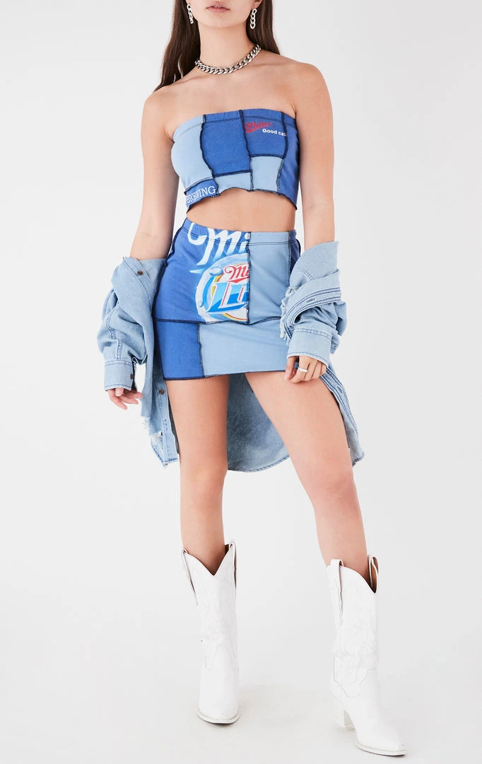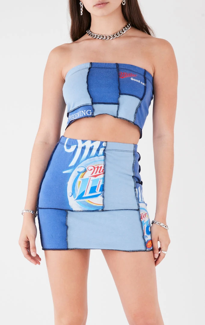 This one-of-a-kind set was crafted from vintage Miller Lite tee pieces sourced all over the USA. Furst of a Kind reworked them and spliced them together creating a two-piece set with a fit to flatter. Â