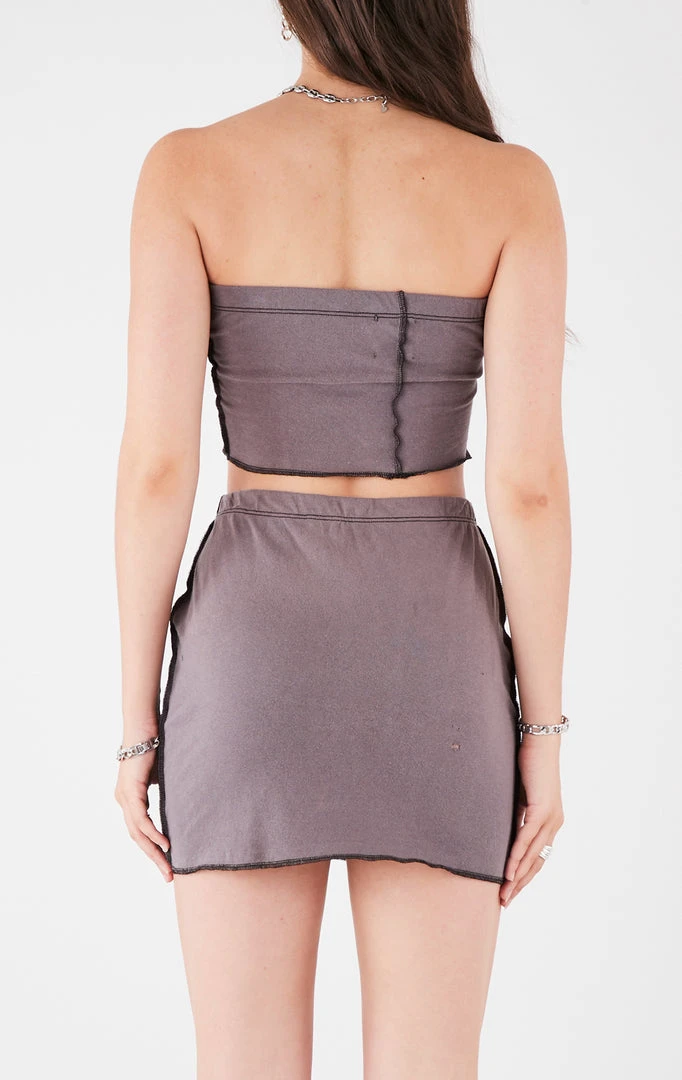 This one-of-a-kind set was crafted from vintage Jack Daniels tee pieces sourced all over the USA. Furst of a Kind reworked them and spliced them together creating a two-piece set with a fit to flatter. Â