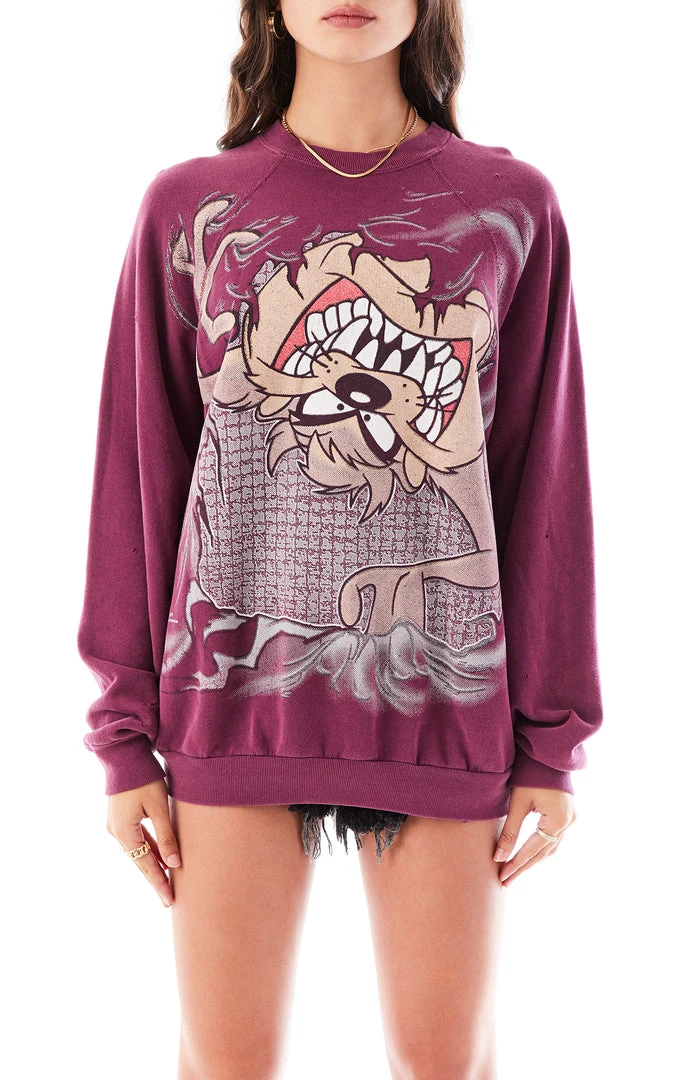 What time is it? Toon time. Furst of a Kind hand sourced this perfect vintageĀ Tazmanian Devil cartoon sweatshirt to satisfy all of your Saturday morning nostalgia. This one wasĀ found in Los Angeles by the Furst of a Kind team & reworked just a touch to maintain its original integrity. It featuresĀ stone washingĀ for an ultra worn-in, effortless look.Ā You know what to do.Ā
