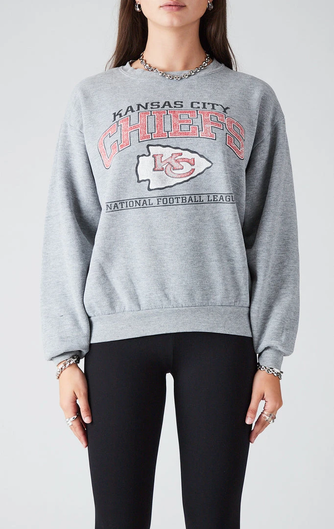 THE perfect vintage Kansas City Chiefs sweatshirt. Period. Let’s be honest, a classic sports vintage sweatshirt never goes out of style. This one was sourced in Los Angeles by the Furst of a Kind team & reworked just a touch to maintain its original integrity. It features stone washing for an ultra worn-in, effortless look. You can really never have enough.