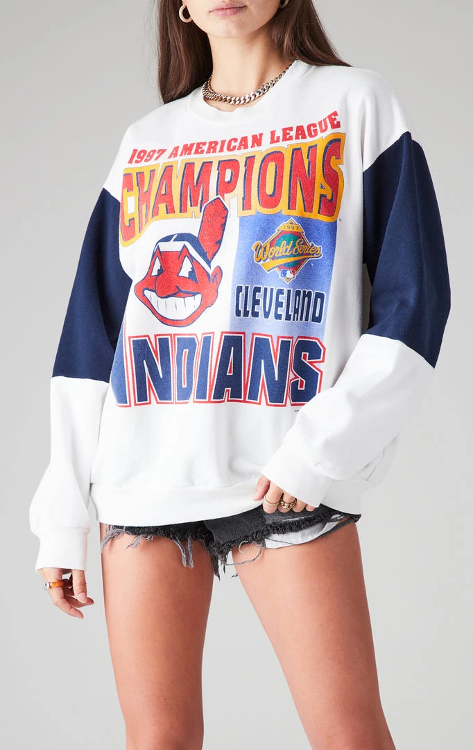 THE perfect vintage Cleveland Indians sweatshirt. Period. Let’s be honest, a classic vintage sports sweatshirt never goes out of style. This one was sourced in Los Angeles by the Furst of a Kind team & reworked just a touch to maintain its original integrity. It features a stonewash treatment for an ultra worn-in and effortless look. You can really never have enough.