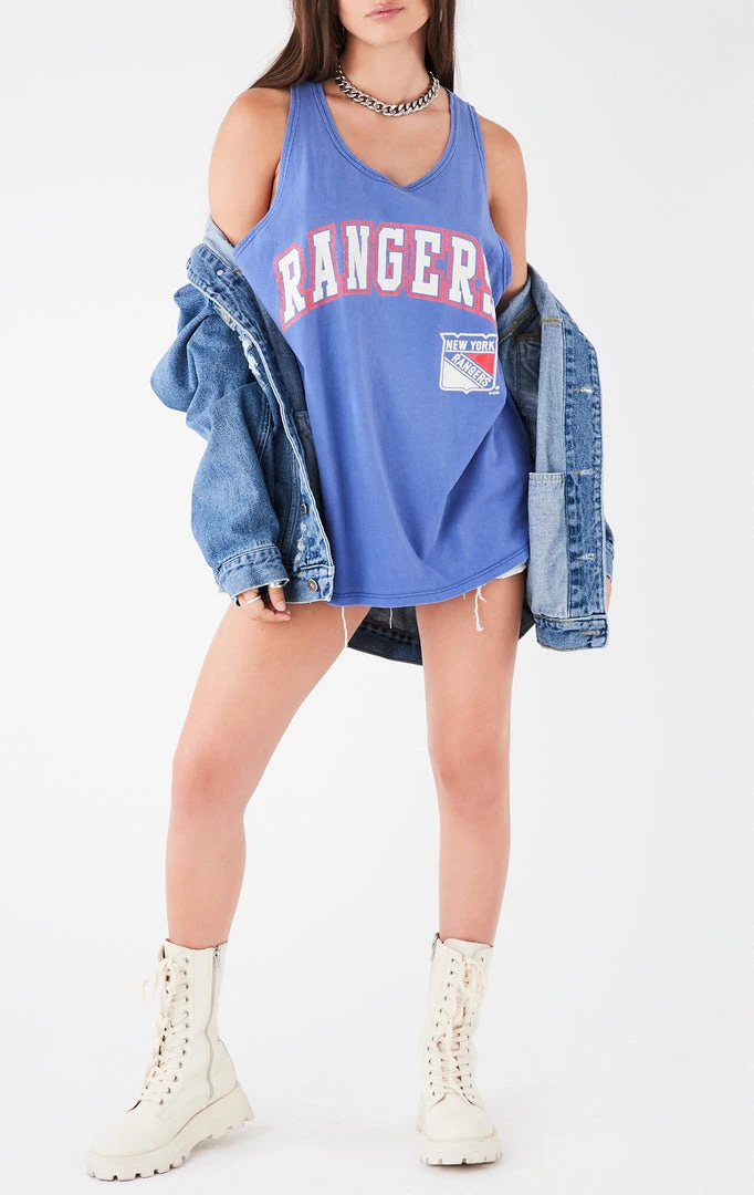 One-of-a-kind vintage New York Rangers sports tank top. Furst of a Kind reworked this vintage tank by putting it through a stone washing process, giving it the ultimate soft vintage feel.