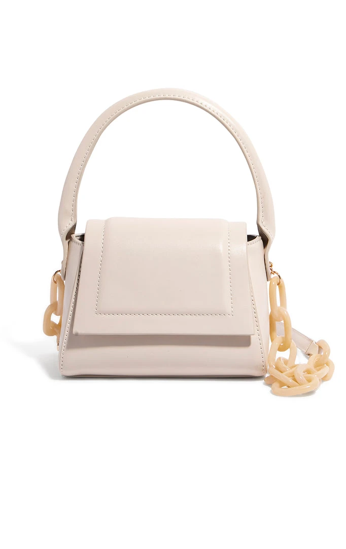 The 90’s called and they’re jealous you’re accessorizing better than they did. We Are Chic Top Handle in Nude by House of Want. This baguette shape is the “it” bag of the moment and it’s the perfect accessory to transition with you from day to night. We can’t stop obsessing over this dreamy nude vegan leather bag paired with subtle resin chain detailing.Â